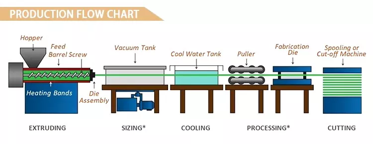 Dalam proses pengeluaran tiub penggulungan ABS setebal 4 inci 9mm untuk filem, penyediaan bahan mentah adalah langkah utama. Pelet plastik ABS berkualiti tinggi mesti dipilih dengan teliti untuk memastikan ketulenan dan prestasinya memenuhi spesifikasi. Kami menggunakan pelet berkualiti tinggi. Memandangkan resin ABS mengandungi kumpulan nitril dan mempamerkan kadar penyerapan lembapan kira-kira 0.3%, rawatan pengeringan adalah wajib sebelum pengacuan penyemperitan. Biasanya menggunakan pengeringan udara paksa pada 70°C hingga 80°C selama 2 hingga 4 jam, kandungan lembapan dikawal ketat di bawah 0.1% untuk mengelakkan kesan buruk terhadap kualiti pemprosesan. Selepas itu, bahan memasuki peringkat pengacuan penyemperitan. Pelet ABS kering mula-mula ditambah pada corong penyemperit, di mana ia dicairkan dan dicampur secara seragam melalui putaran skru dan pemanasan. Struktur skru biasanya menggunakan pic malar dengan kedalaman benang yang berubah-ubah secara beransur-ansur, menampilkan nisbah panjang-ke-diameter antara 25 dan 35 untuk menampung ciri-ciri penyemperitan plastik ABS. Kawalan suhu amat kritikal semasa penyemperitan. Suhu tong dibahagikan kepada zon suapan, pemplastikan, dan penghomogenan, dikekalkan pada 160°C hingga 170°C, 170°C hingga 180°C, dan 170°C hingga 175°C masing-masing. Suhu kepala dan die lebih tinggi sedikit pada 175°C hingga 185°C dan 180°C hingga 190°C untuk memastikan pemplastikan lengkap dan penyemperitan yang licin. Plastik ABS cair diekstrusi melalui acuan yang direka dengan tepat untuk membentuk kosong paip berterusan. Sejurus selepas itu, paip kosong tersemperit mengalami penyejukan pantas melalui peranti penyejuk, biasanya menggunakan penyejukan air suhu bilik. Suhu penyejukan dikawal antara 15°C dan 22°C. Pada masa yang sama, jarak antara lengan saiz dan cetakan mesti dikekalkan dalam lingkungan 15 hingga 35 milimeter untuk memastikan kestabilan bentuk dan dimensi kosong paip semasa proses penyejukan. Akhirnya dipotong mengikut dimensi yang diperlukan.